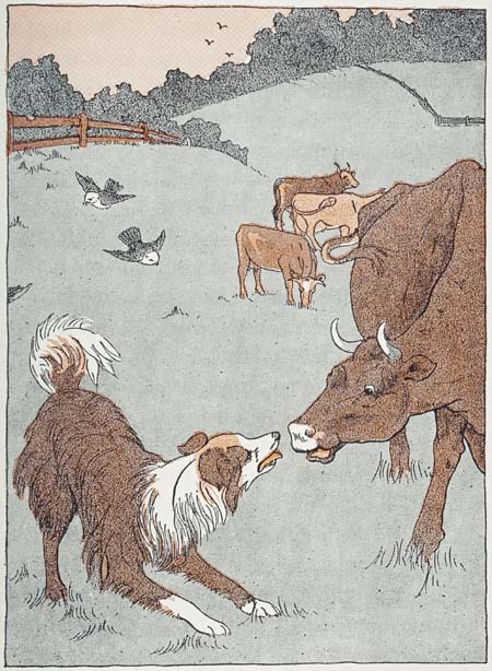 All the dogs thought this was a very fine story, and begged the Judge to tell them some more. So, at the next session, he told them a couple of brief narratives, one about a puppy and young turkey, and another about a blind man’s dog.