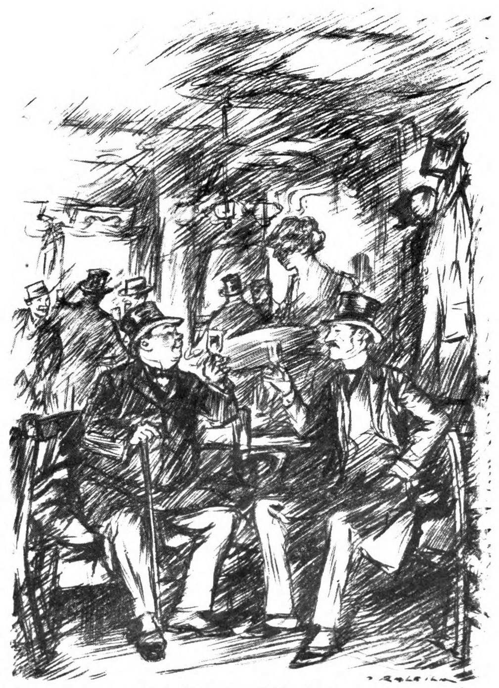 On the other hand, Mapleson always started the day badly. He was a large, florid man with a puffy face and strangely colorless eyes. He wore a ponderous frock coat that was just a little out of date, with a waistcoat that hung in folds, and the folds never seemed free from sandwich crumbs and tobacco ash. He had an unfortunate habit with his clothes of never being quite complete. That is to say, if he had on a new top hat his boots were invariably shabby, or if his boots were a recent acquisition his top hat would seem all brushed the wrong way. As I say, he always started the day badly. He would be very late and peevish and would fuss about with pills and cloves. He would complain of not being quite “thumbs up.” Eleven fifteen would invariably find him round at “The Monitor,” leaning against the ma{7}hogany bar and asking Mrs. Wylde to mix him “a whisky and peppermint” or some other decoction that between them they considered would be just the thing for his special complaint that morning. “In the way of business,” he would treat and be treated by several other pals in “the sticks,” as this confraternity called the Furnishing Trade. It would be interesting to know what proportion of Mapleson’s and White’s income was devoted to this good cause. When Mapleson would arrive home, sometimes late at night, breathing heavily, and carrying with him the penetrating atmosphere of the taproom, he would say in response to the complaints of his tired wife, “I hate the stuff, my dear. You have to do it though. It’s all in the way of business.”