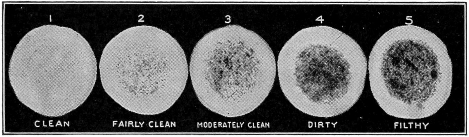 | Fig. 2. | —Filters from sediment tests showing the amount of dirt in different samples of milk. These are the grades made by the New York City Board of Health | 18 |