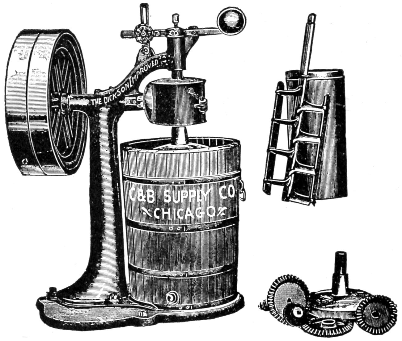 | Fig. 13. | —Perfection brine freezer, direct motor drive. (Courtesy of J. G. Cherry Co., Cedar Rapids, Iowa.)[xiv] | 85 |