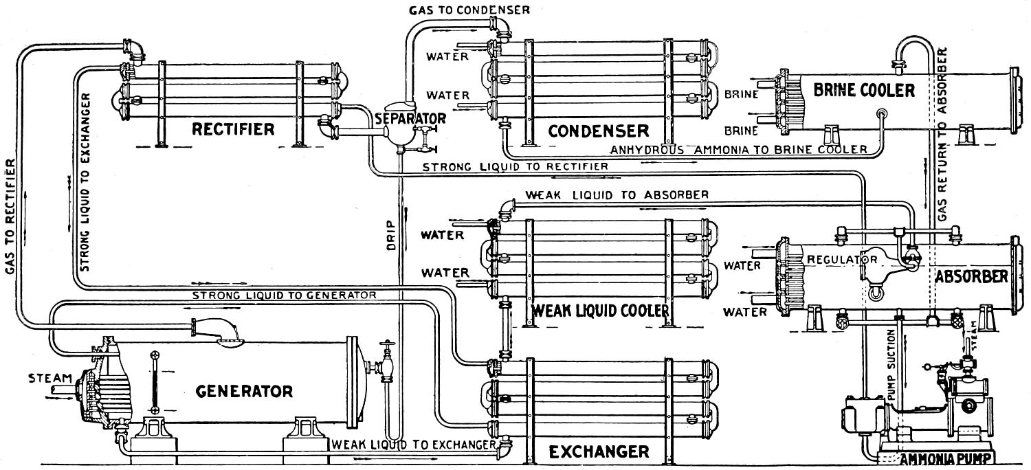 | Fig. 12. | —Vertical belt driven brine freezer connected to ice and salt brine box. (Courtesy of Emery Thompson Machine and Supply Co., New York City.) | 84 |