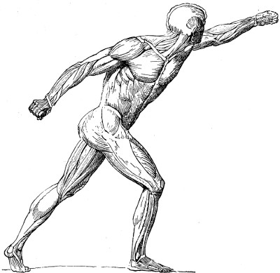 When to these fundamental notions is added a knowledge of the muscular masses which move these bones, the artist will at once be enabled to analyse through the skin, as through a transparent veil, the action of the parts which produce the various forms with their infinite variety of character and movement.