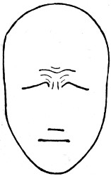 Figure 100 is a diagrammatic representation of pain, expressed only by changes in the neighbourhood of the inner part of the eyebrow (contrast with Fig. 102 following).