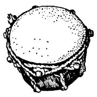 The peyote plant is a curious and unique little cactus. It has no spines whatsoever, and ranges from the carrot-like to the turnip-like in shape and size, without, however, any branches or leaves. The rounded top surface, which alone appears above the soil (and which, cut off and dried, becomes the peyote “button”), is divided radially by straight, or slightly spiral, or sinuous furrows that in some specimens become so complex as to lose the appearance of ribs altogether. These ribs bear little tufts or pencils of matted grayish-white hair, not unlike artists’ fine camel’s-hair brushes. It is from these that the cactus takes both its modern botanical designation, Lophophora (“I bear crests”) and its Aztec name peyotl (from the resemblance to cocoon-silk). In the center of the top there is a little spot of closely matted fuzz, from which the ribs derive and grow; the flower, borne on a stalk, grows from here too, the pinkish-whitish blossom growing into a rapidly maturing club-shaped pinkish-reddish fruit.[6]