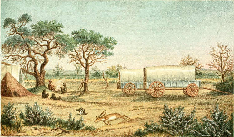There are not many who will need to be reminded[xii] that to “inspan” and “outspan,” words of frequent occurrence in the traveller’s journal, mean, in South African parlance, to “yoke” and “unyoke,” and that “spoor” means “footprints” or “track.” All other words of Dutch or native origin introduced into the text are explained, I believe, where they occur. The accent in the word “Matabele” falls, it may be added, on the third of its four syllables.