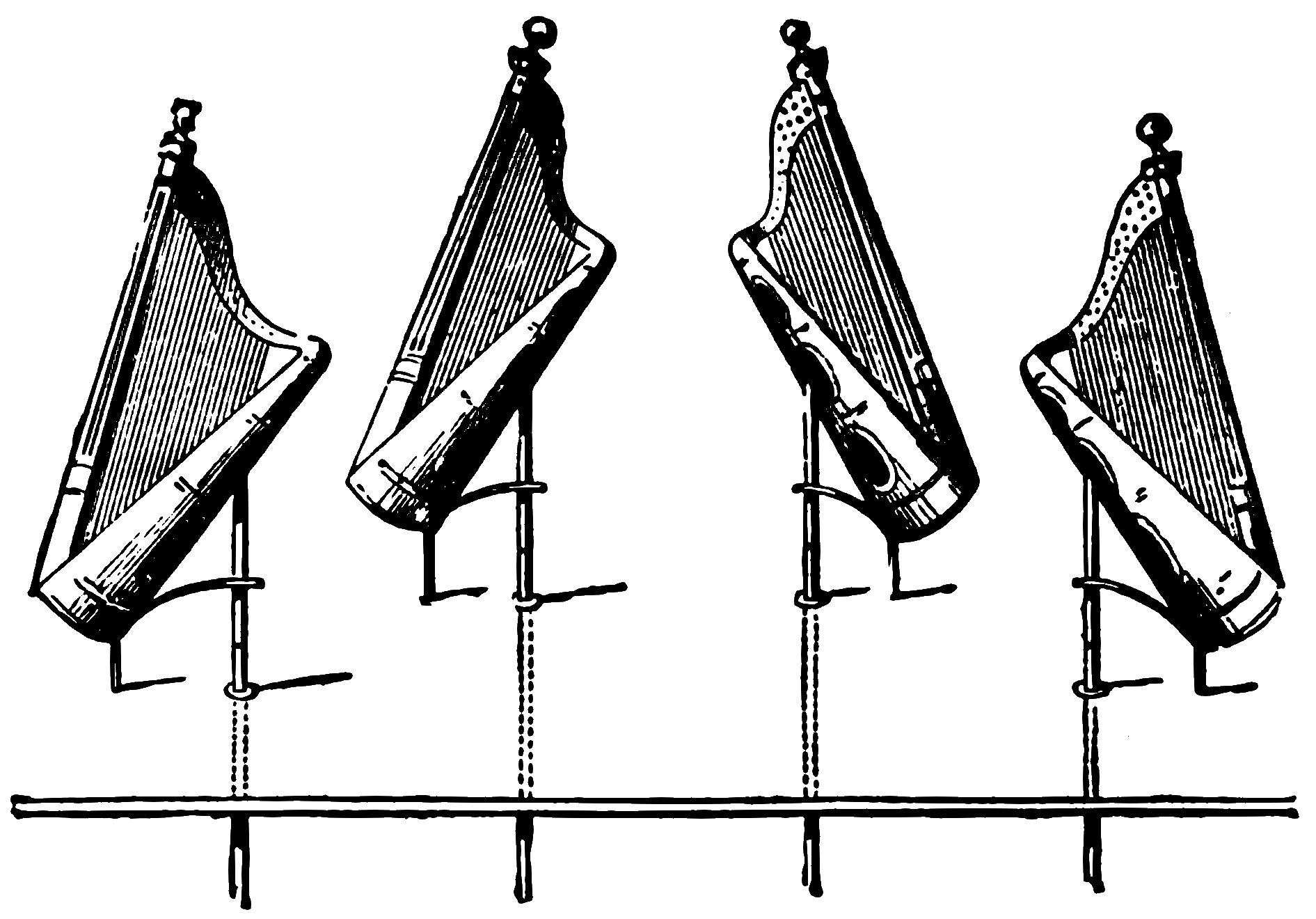 To give greater spirit to the performance of the drum, a second vibrator may be added within, and a second push under the hand of the assistant, who can then with one hand keep up a continuous roll, while with the other [Pg 252]he beats the measure of the march. This, in drum practice, is a special feat, to be executed only by the most skilful performers.