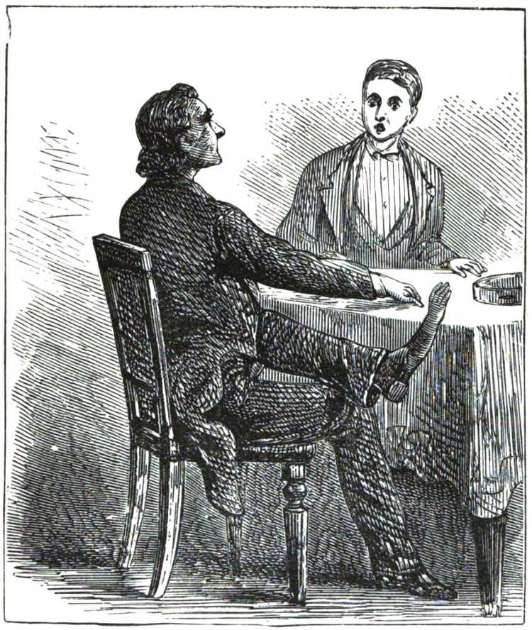 “‘That is easily explained, Count,’ replied Bernard, in the coolest manner possible. ‘I came, as you yourself have done, at the sound [Pg 25]of the explosion, and as I got here, I saw a man just making his escape down the back stairs. I was so alarmed, that I hadn’t the power to follow him. He must be out of the house by this time.’