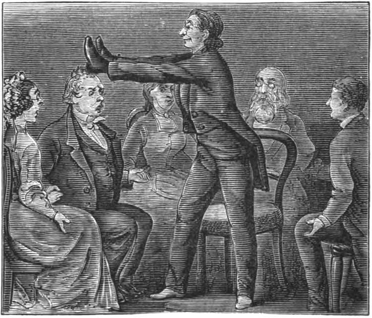 Lest the simplicity of the explanations we have here given should tend to discredit their genuineness, we may remind the reader that the art of conjuring consists not half so much in doing wonderful things (for what is actually done is often very simple), as in persuading the spectator that wonderful things are done. It is a matter of common knowledge among conjurors, that not one spectator in a hundred, unless he be himself a conjuror, can give even a fairly correct account of what has been visibly done in the performance of a trick. And if such be the case in broad gaslight and with every opportunity of observation, how much more is it likely to be so in darkness or semi-darkness, with scarce half of the physical senses permitted to be used, and the mental vision obscured by the belief or semi-belief of supernatural intervention.—Ed.]
