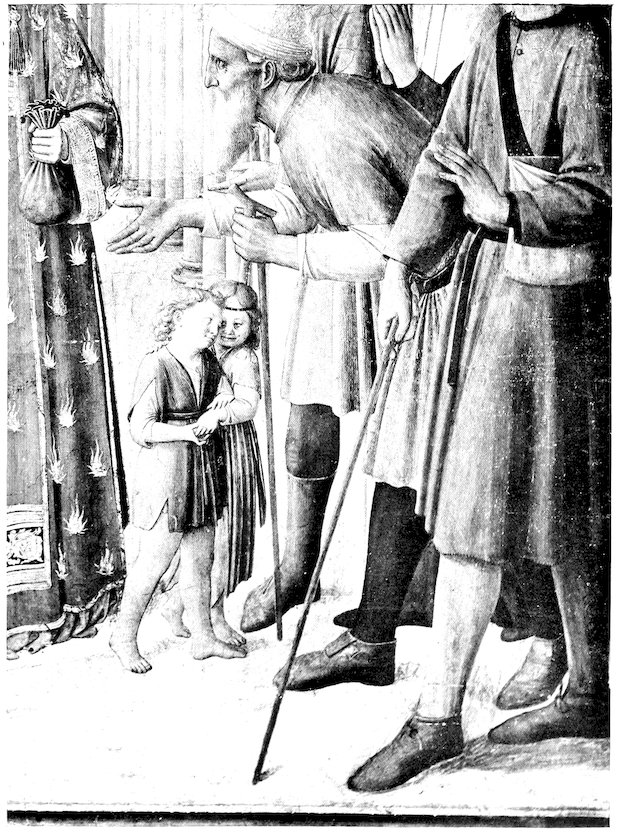 One of the noblest of portrait groups by one of the noblest masters—Mantegna’s picture of the “Family of Lodovico Gonzaga”—has the portraits of two children at the majestic mother’s knee. The girl is at play; the boy, with his father’s hands on his shoulders, has extraordinary beauty of drawing and expression.