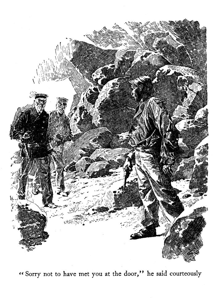 "Nothing remained but to search for his body. I was sure they had killed him and taken the chest. I had little expectation of finding him, dead or alive. None after I saw the stream of lava pouring into the sea. One saves his own life by instinct, I suppose. There I was. I had to live. It did not matter much, but I continued to do it by various shifts. That last day on the headland the fumes nearly got me. You may have noted the rather excited scrawl in the back of the ledger? Yes, I thought I was gone that time. But I got to the cave. It was low tide. Then the earthquake, and I was walled in.... Mr. Barnett's very accurate explosives--Slade's insistence--your risking your lives as you did, mites on the crust of a red-hot cheese--I hope you know how I feel about it all. One can't thank a man properly for the life....