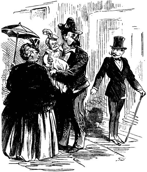 Mite stop a hole to keep the wind away;" Onless from Wall Street, was blowin' raw. The tempestous breezes, from a broker's flaw. Amid tumultous cheers, and a general rushin' to DELMONICO'S, where Wall Street waters her stock, (of lickers,) I sot down. Ewers, without a dowt, HIRAM GREEN, Esq., Lait Gustise of the Peece. Stage By-play. A sporting paper gives the following item: "Two nines, composed of members of BOOTH'S, WALLACK'S and the Olympic theatrical companies, played an interesting game of base-ball at the Union base-ball grounds, last week." Imagine Sir HARCOURT COURTLEY batting splendidly to DIEDRICK VAN BEEKMAN'S pitching; or picture Major DE BOOTS waiting patiently on the short stop for a chance to put Captain ABSOLUTE out on his second base. The experience of these gentlemen before the footlights may have made them light-footed, but from mere force of habit they are all pretty sure to be caught out in the "flies." Professional. "They may talk about nines," said the Doctor, when base-ball was the subject under discussion. "They may talk about their nines; but I know of a nine that would lay them all out in double-quick time, and it is called Strychnine." A FECULENT NUISANCE. Persons passing along Nassau Street, between Ann and Beekman Streets, for some days past, have had their olfactories unpleasantly assailed by a vile stench. On investigation by officers of the Board of Health, the foul odor was found to exhale from the premises of 113 Nassau Street. Further examination disclosed the fact that the nuisance arose from a quantity of Dead Rabbits deposited on the premises by one JAMES O'BRIEN, for purposes best known to himself. It is said that the entire concern is to be handed over to the New York Rendering Company, for conversion into the kind of tallow used for the manufacture of the cheapest kind of rush-lights. The Greatest Joke of the Season. The idea of nominating JAMES O'BRIEN for the office of Mayor of the City of New York. But it cannot be called a practical joke.