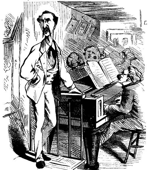"ENGLISH GRAMMAR INCLUDED." 1st Young Gentleman. "I TELL YOU WHAT, IT'S AWFUL HARD TO GET ANYTHING TO DO, JUST NOW." 2d ditto. "THAT'S SO. I SEEN AN ADVERTISEMENT YESTERDAY FOR A TUTOR IN A FAMILY, AND I'VE JUST BIN AND WROTE AN ANSWER." THE QUEUE-RIOUS FUTURE. Of all the queues which any man or any nation ever gave to another, the Chinese have supplied us with the most queue-rious. The arrived man from that celestial part of the world, who is now so industriously engaged washing for us in New Jersey, and again, making our shoes in Massachusetts, and who proposes to be our dairymaid, our chambermaid, our barmaid, and, if BARNUM will go into the humbug business again, our mermaid, brought the queue on the back of his head when he crossed the Pacific Ocean, and landed on the coast of California. Thence he conveyed it across the Plains, and now our mothers are going back to two queues such as those they wore when the roses which bloomed upon their cheeks were not produced by rouge, and to comprehend the lessons in the school-books which they carried was the severest trial which they knew, except, indeed, the restrained desire to get married. And our fathers will wear one tail, as did their ancestors, who curled those appendages gracefully around the limbs of the trees while they played base-ball with cocoanuts, or visited in that nimble manner in which none other than monkeys are capable of moving about. Our great American agriculturist, too, who has ploughed so deeply in the Tribune office, is going to look like a Chinese; and she, who has given us our Caudle lectures now for many years past, will exhibit ANNA DICKINSON as a convert to two tails. Next, he who serves up for us our religion every once a week in the form of sanctimonious speeches on the subject of political economy, will let his congregation go behind Plymouth Pulpit for the purpose of getting their queues for the next Sunday love-feast by observing his. The "long" and the "short" of the new vanity, however, will be found in fullest perfection among the bully-bears in Wall street, who, of all other honest men, are best able to teach the rising generation the significance of "heads I win, tails you lose." Then, again, in the far future perhaps some industrious antiquary will exhume an awful tail of the present generation that was invented by Mrs. H.B. STOWE, when she looked across the Atlantic Ocean, and interviewed the ghost of BYRON. The future is going to be glorious and queue-rious for all who wish to up-braid, and when our fathers pass us, and we see their heads, we will be convinced that thereby hangs a tail; also, when our mothers' heads go by, that thereby hang two tails. AN ODE-IOUS SUGGESTION. Swinburne has written an ode to the French Republic. This lofty rhyme is built up of strophes, anti-strophes, and an epode. In its construction, and grandiloquence are thrown about with the careless disregard for innocent passers-by which characterizes that poet's freedom of style. Most probably no sane English-speaking person has read it through and preserved his sanity. The poet's idea in writing it was to get the French engaged in trying to understand it, and the Germans to engage in translating it, and thus stop the war by pure exhaustion of the combatants. The idea was good, but hardly practical. SOCIAL SCIENCE BY TELEGRAPH. The right of an independent Briton to beat his wife without being liable to impertinent foreign interference is well known to be one of the most precious privileges inherited from Magna Charta. The national use of this privilege is now generally considered, by social philosophers, to be the foundation of the love of "fair play," so universally characteristic of the English. It is only upon this ground that we can account for the following item recently telegraphed from London as a special to the N. Y. Times. "It is curious to see that, while the married men of the city are against interference, all military and naval men are loud in expressions of indignation because no effort is made by England to save France from ruin." As we see it, this is not curious at all. To the comprehensive English mind, the war in Europe is a mere family quarrel, on a large scale. But what is really curious the special does not tell us. What position do the military and naval men take who happen to be married? A GROWL FROM A BRITON. Mr. Punchinello:—One of the balloon reporters from Paris says: "Great care is taken to save food from waste. There is much horse-flesh eaten." For a Frenchman in a state of siege horse-flesh is all right—the French eat frogs, you know, and horses have frogs in their feet. What I like about the thing in Paris, though, is that they call it horse-flesh, and don't try to jerk it on a fellow for beef. Jerked beef is bad enough, but only think of jerked horse, by Jove, you know! Now I want to say that here in New York, not being in a state of siege, we are eating a lot more horse-flesh than we know of, all the same—but they call it beef. Look here, now. I take my grub, sometimes (only for the sake of seeing life, you know), at a decent sort of a place enough, to which butchers resort. There is a man always to be seen there at grub time, a cockish-looking fellow, somewhat, with a horse-shoe pin in his scarf, and he is as thick as thieves with the butchers. Yesterday, for the first time, I got an inkling of who and what he is. I saw him performing an operation upon a horse, in the yard of a livery stable. He is a VETERINARY SURGEON! He consorts with BUTCHERS! Put that and that together, Mr. PUNCHINELLO, and see what you can make of it. And the duffer always eats mutton, too, or fish. I never yet heard him call for beef. He knows all about nag, and likes it alive, but he is not to be nagged into eating it. Neigh! neigh! Yours, irascibly, YORKSHIRE-PUDDINGHEAD. DEAD BEATS. Muffled drums. |