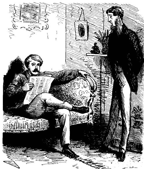 Is sweeter-er than I, I've diskivered I haint the game You want to see roost high.'" They left me, yes, they left me. I wasent the man, but some awdacious retch had sot 'em on tellin 'em I was the man. Surgeon GOODBLOOD, of the man o' war Vermont, then took me under his charge. I found him one of them noble docters, under whose perscriptions a man could enjoy 'kickin the bucket.' He took me to see the soljers drill. "Thems the Marines," said he, pintin to the bloo cotes. "Sho! you don't say?" says I. "Are them those obligin gentlemen who are allways ready to listen to what is told 'em?" "Yes," says the Dr.; "anything nobody else believes, we tell to the Marines." I mite okepy your hul paper tellin all about the war vessels, pattent torpedoes, monitors, and sich, which I saw, but will close with the remark: That old rats never pile livlier onto roasted cheese, than a bread and butter patriot does onto candidates who has the cuttin of a good fat loaf. That's wisdom which will wash. Ewers, HIRAM GREEN, Esq., Lait Gustise of the Peece. SIMILE USED UP. We regret to state, that in consequence of a late discovery by one BÉCHAMP, of living things in chalk (he has actually seen 'em wriggle!) we are no longer at liberty to say, "As different as Chalk and Cheese." The difference is gone! If it is not, we would ask, where is it? It is true, chalk is not in so general use, as an article of diet, as cheese, except in boarding-schools; but the difference is plainly one of degree rather than of kind. We have heard of "prepared chalk." It has been whispered that gentle spinsters use it for a beautifyer. We rather incline to the belief that it is prepared for the inside rather than the outside of humanity. At any rate, the two articles now agree in their most prominent characteristics—which they did not, till M. BÉCHAMP looked into the matter with his microscope. 'Tis thus, alas! our cherished similes are going. One by one are they Bé-champ-ed (or chawed up) by the voracious creatures who hunger and thirst after novelty. Why, we expect to be told, ere long,—and have it proved to us,—that the Moon after all is actually and truly made of Green Cheese. And there will go another fond comparison! Nay, more;—perhaps Cheese itself is but Chalk, in its incipient stages of development,—with the tenantry already secured, however, that make it so lively inside.—Si sic Omnes. To Our Youthful Friends. We wish to do all in our power to keep the world cheerful. If there is a youth of our acquaintance who despairs of ever raising a fine moustache, we would remind him of that comforting apothegm of the Spanish: "Un cabello haze sombra"—"The least hair makes a shadow." Courage, lad! and do not cast that shadow from thy lip. If there is a single hair already there, it is a manly and noble thing! "Done Brown." "TOM BROWN" is not looked upon as a sheepish person, and yet, the English of his name is ewes ('ughes).