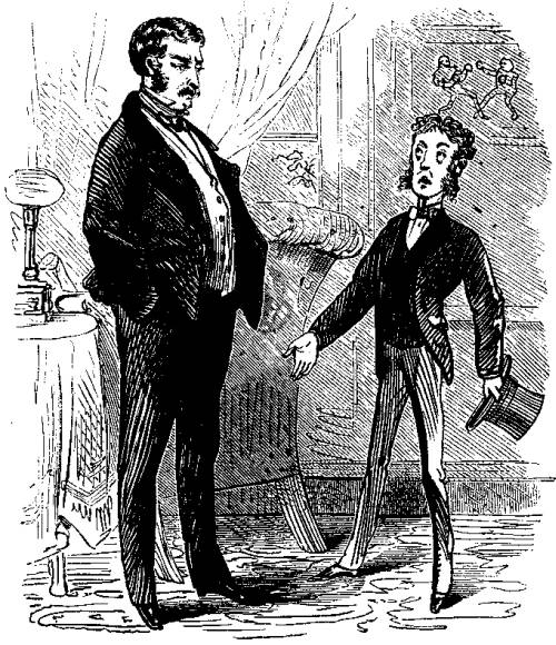 monarchies! Down with rents! Up with G.F. TRAIN! PUNCHINELLO TO "THE SUN." DEAR SUNNY:—In our issue dated November 19th, we took occasion to congratulate you upon the sparkle added to your "Sunbeams" by the judicious reproduction of our crisp and crystalline little poem "SALLY SALTER." We have no doubt that your languid circulation was partly restored by the timely aid thus unconsciously afforded you by PUNCHINELLO. If any SALTER could save your bacon for you, surely "SALLY" was the one to do it; only you shouldn't have tried to pass her off as one of your own SALLIES. The jackdaw decked out in peacock's feathers was a bird truly absurd, though not a whit more so than a Solar Dodo like yourself with a PUNCHINELLO plume for a tail. Now, in your number for November 9th, we find a remarkably pretty "Autumn Song." It was pointed out to us, triumphantly, by a man who carries The Sun in his pocket, and who wanted to know why PUNCHINELLO never gave his readers anything like that? In reply, we courteously referred him to PUNCHINELLO of October 22d, in which that identical "Autumn Song" made its "first appearance upon any stage." And so there you go, dear DODO SUNNY, with another PUNCHINELLO feather in your pensive tail. Keep decking yourself with the feathers, dear SUNNY. They become you well; and when you've got a bushel or so of 'em, we'll dispose of you to BARNUM as the original Anti-Promethean Dodo that stole fire from PUNCHINELLO to light up The Sun. PUNCHINELLO.