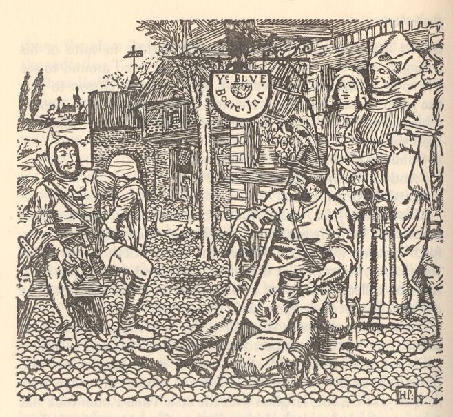 Bright shone the sun upon the dusty highway that led from Nottingham to Lincoln, stretching away all white over hill and dale. Dusty was the highway and dusty the throat of the messenger, so that his heart was glad when he saw before him the Sign of the Blue Boar Inn, when somewhat more than half his journey was done. The inn looked fair to his eyes, and the shade of the oak trees that stood around it seemed cool and pleasant, so he alighted from his horse to rest himself for a time, calling for a pot of ale to refresh his thirsty throat.