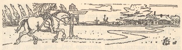Then he called up a messenger in whom he placed great trust, and bade him saddle his horse and make ready to go to Lincoln Town to see whether he could find anyone there that would do his bidding and win the reward. So that same morning the messenger started forth upon his errand.