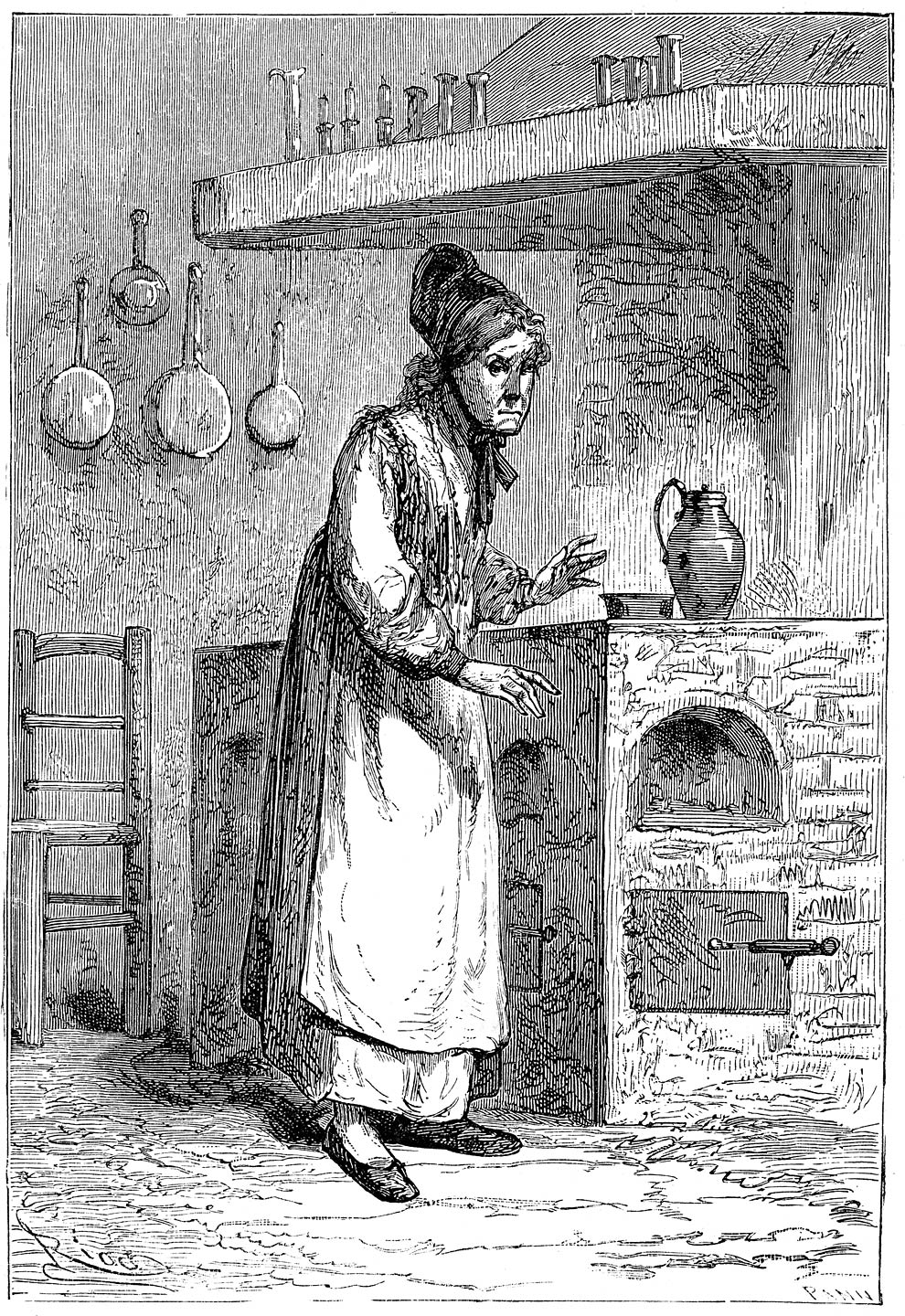 De goede Martha zou bijna gedacht hebben veel te laat te zijn, want het middageten was nauwelijks aan de kook op het fornuis in de keuken.