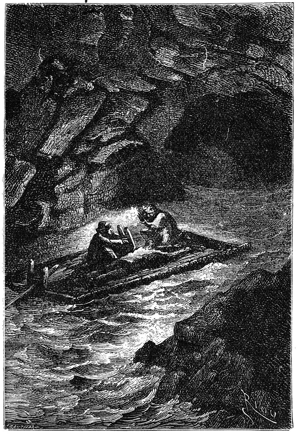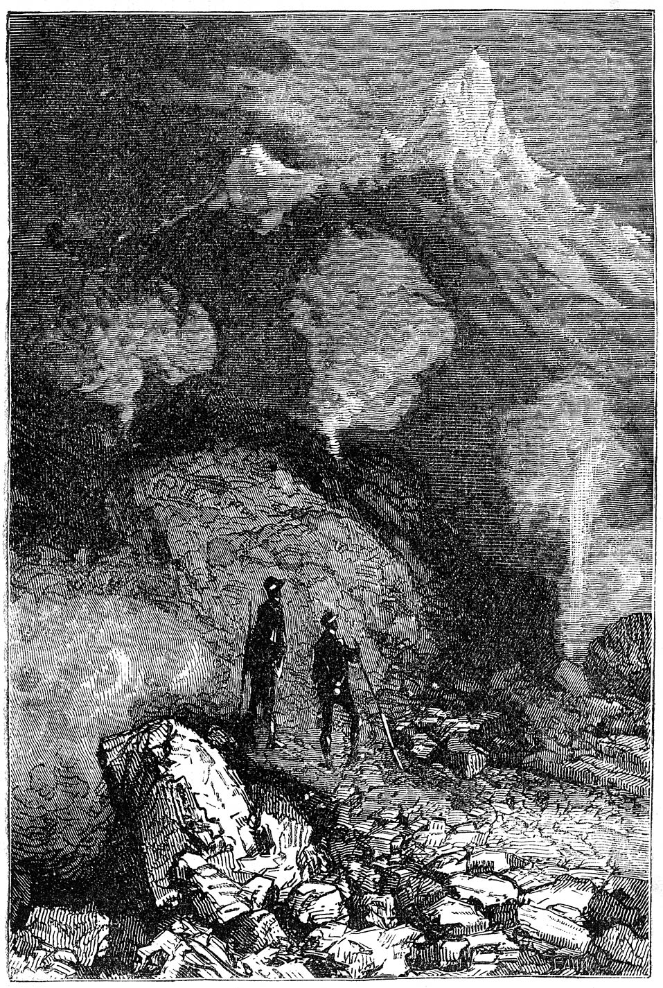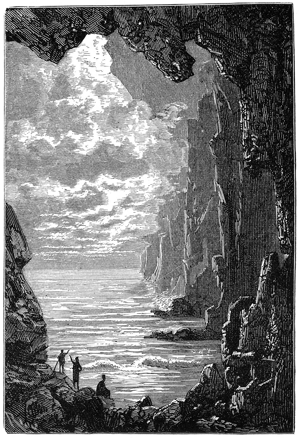 | XXX. | De zee.—Onderaardsch licht.—Onmetelijk hol.—Versterkende zeewind.—Woud van paddestoelen.—Fossiele beenderen.—Vrees voor voorwereldlijke monsters.—Gerustheid van den professor. | |