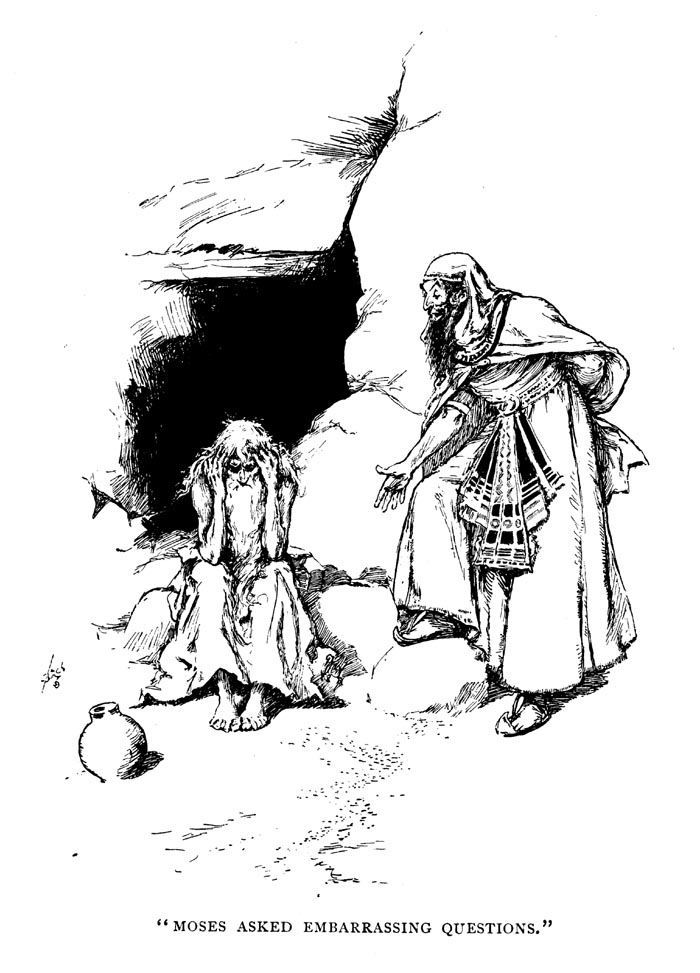 "Among my visitors at that time was Moses. He had heard of me, and came to see what manner of man I was. We became very well acquainted. He was a man anxious to obtain information, and he asked me questions which embarrassed me very much; but I do not know that he suspected I had lived beyond the ordinary span of life. There are a good many traditions about this visit of Moses, some of which are extant at the present day; but these, of course, are the result of what might be called cumulative imagination. Many of them are of Moslem origin, and the great Arabian historian Tabari has related some of them.
