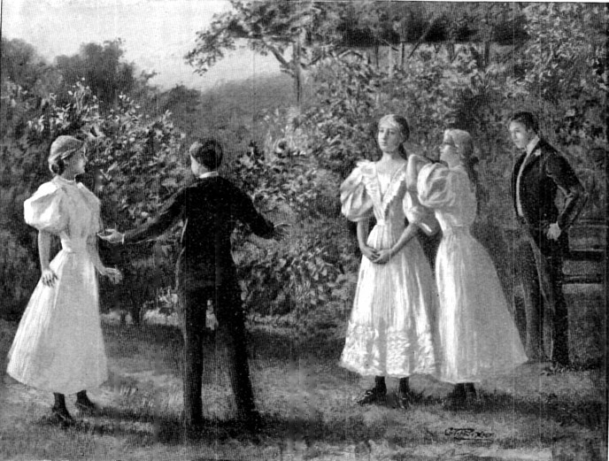 The group of girls looked at one another in startled surprise. "Who—what!" Then Dora Robson, glancing over the piazza railing, exclaimed,—