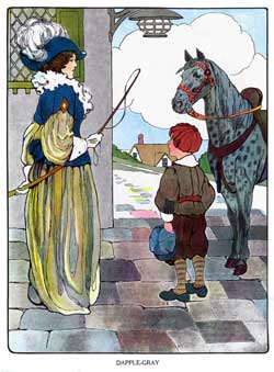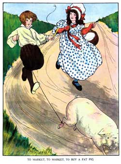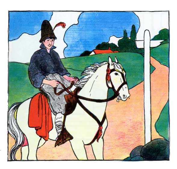 Here goes my lord A trot, a trot, a trot, a trot, Here goes my lady A canter, a canter, a canter, a canter! Here goes my young master Jockey-hitch, jockey-hitch, jockey-hitch, jockey-hitch! Here goes my young miss An amble, an amble, an amble, an amble! The footman lags behind to tipple ale and wine, And goes gallop, a gallop, a gallop, to make up his time. |