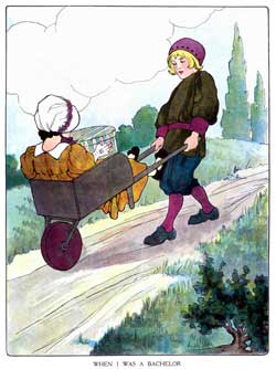 There was a little man, Who wooed a little maid, And he said, "Little maid, will you wed, wed, wed? I have little more to say, So will you, yea or nay, For least said is soonest mended-ded, ded, ded." The little maid replied, "Should I be your little bride, Pray what must we have for to eat, eat, eat? Will the flame that you're so rich in Light a fire in the kitchen? Or the little god of love turn the spit, spit, spit?" HERE GOES MY LORD