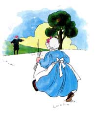 LITTLE BO-PEEP Little Bo-Peep has lost her sheep, And can't tell where to find them; Leave them alone, and they'll come home, And bring their tails behind them. Little Bo-Peep fell fast asleep, And dreamt she heard them bleating; But when she awoke, she found it a joke, For still they all were fleeting. Then up she took her little crook, Determined for to find them; She found them indeed, but it made her heart bleed, For they'd left all their tails behind 'em! It happened one day, as Bo-peep did stray Unto a meadow hard by-- There she espied their tails, side by side, All hung on a tree to dry. She heaved a sigh and wiped her eye, And over the hillocks she raced; And tried what she could, as a shepherdess should, That each tail should be properly placed. |