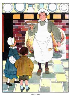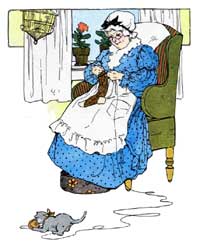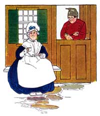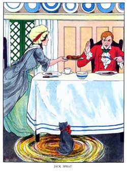 Pussy-cat ate the dumplings, the dumplings, Pussy-cat ate the dumplings. Mamma stood by, and cried, "Oh, fie! Why did you eat the dumplings?" |