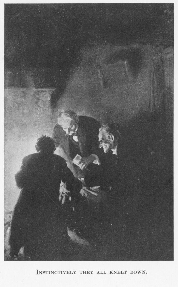 Instinctively they all knelt down together to discover, if possible, and administer ignorantly to, its wants. The scene had the appearance of an adoration.