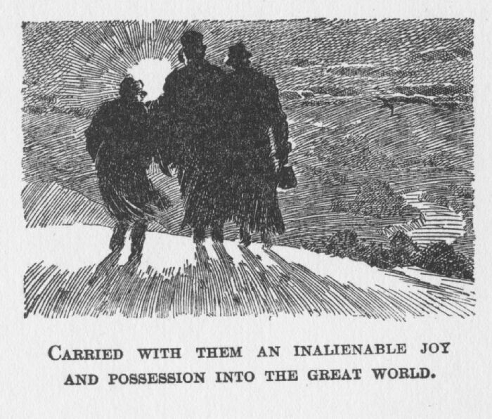 Then these three wise, lonely, childless men who, in furtherance of their own greatness, had cut themselves adrift from the sweet and simple things of life and from the kindly ways of their brethren, and had grown old in unhappy and profitless wisdom, knew that an inscrutable Providence had led them, as it had led three Wise Men of old, on a Christmas morning long ago, to a nativity which should give them a new wisdom, a new link with humanity, a new spiritual outlook, a new hope.