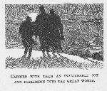 At last, after many stops at little lonely stations they arrived at Trehenna. The guard opened the door and they stepped out on to the snow-covered platform. An oil lamp hung from the tiny pent-house roof that, structurally, was Trehenna Station. They looked around at the silent gloom of white undulating moorland, and it seemed a place where no man lived and only ghosts could have a bleak and unsheltered being. A porter came up and helped the guard with the luggage. Then they realized that the station was built on a small embankment, for, looking over the railing, they saw below the two great lamps of a motor car. A fur-clad chauffeur met them at the bottom of the stairs. He clapped his hands together and informed them cheerily that he had been waiting for four hours. It was the bitterest winter in these parts within the memory of man, said he, and he himself had not seen snow there for five years. Then he settled the three travellers in the great roomy touring car covered with a Cape-cart hood, wrapped them up in many rugs and started.