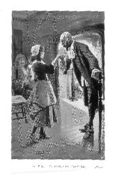 "Give me thy hand, child," says he; and having it, he lifts it to his lips and kisses it as if she had been the finest lady in the land.