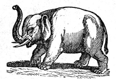 Is the biggest of all land animals. He is more than five times as big as an ox. But he is a harmless creature, for all that. When he is wild, and lives in the woods, he will run away, if you attempt to go near him. When he is tame, he will take a piece of cake out of your pocket, and let you ride upon his back.