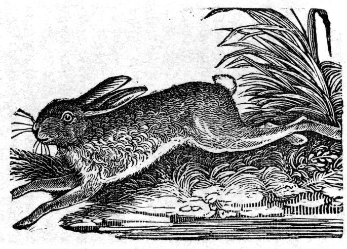 The Rabbit is a very pretty animal, and loves to live about the house and barn, in a state of friendship with all around it. It has no defence, but to run away; and so harmless and innocent is it, that nobody can have the heart to do it injury. It feeds upon clover, apples, and other fruits, and will often sit for hours in some snug covered place, quietly chewing its cud, with the greatest satisfaction. There is another kind of rabbit, which runs wild in the woods and fields. He is remarkably swift of foot, and no dog can overtake him in a race, but a grey-hound. His fur is very soft, and is used in making coarse hats.