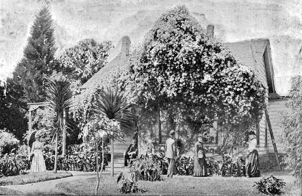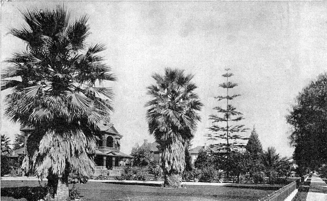 It is said that nowhere on the continent is so great a variety of vegetable growth presented in one locality, as is here to be seen in the full perfection of lusty growth. The cacti at this point are marvels of variety and beauty. One's idea of what a cactus is can never be complete until one has witnessed a scene such as this, and a collection of this magnitude. The fruit trees form a mass of groves. In some of these, huge cocoanuts tower away above all other growth, while alongside of these monarchs of arbory culture there are groves of dwarf trees, less tremendous but quite as interesting.