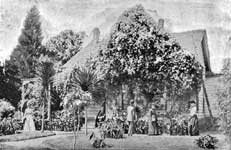 This river, as we have seen, forms the western boundary of Eastern Florida. It is a very romantic stream, running through a country of surpassing beauty, with tropical trees and undergrowth coming right to the water's edge. It enters Florida from Southern Georgia, and runs through a country which varies from forest to plain and from upland to valley. Along its banks there are a number of little Southern homes, few of them boasting of the magnificence of which we often read, but all of them peaceful and attractive. Of one of these we give an illustration. At first glance they may not appear to be anything very remarkable about the little house and its surroundings, but on second thoughts and glances something more than poetical will be discovered. The old negro ballad from which we have quoted above gives in its lines a charming idea of the river and of the memories and thoughts which cling to it. Excursion parties are very frequent along the river. Some indulge in hunting, and take advantage of the profusion of game on every hand. Others prefer to indulge in peaceful reverie and to think only of the quaint old folks, who, as we are told in the song, still stay in the vicinity.