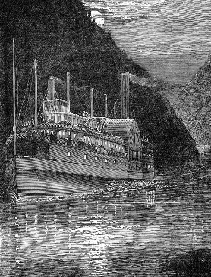 In another chapter we say something of a trip down the picturesque Hudson, whose banks are lined with historic landmarks and points of pressing interest. We give an illustration of a pleasure boat on the Hudson, which reminds one of many delightful river trips taken at various periods, and also of the events of national importance which centered around the river that is crowded, year after year, with pleasure-seekers from the overcrowded metropolis at its mouth.