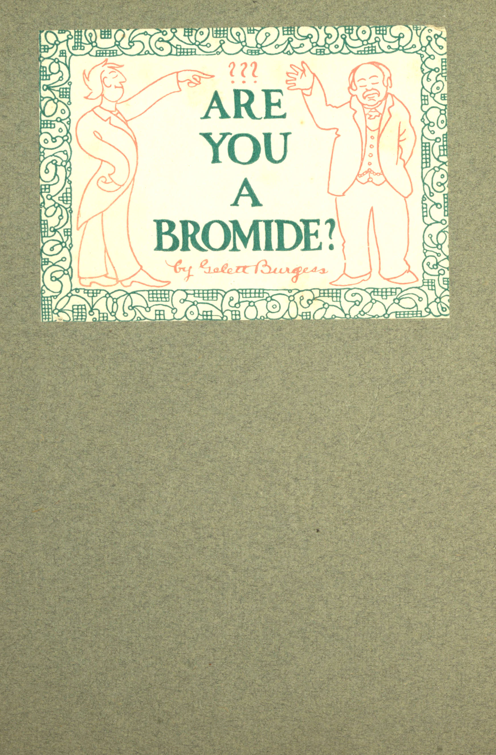 So much has a mere name already done for us that we may say, boldly, and this is our First Theorem: that all Bromides are bromidic in every manifestation of their being. But a better comprehension of the term, and one which will perhaps remove the taint of malediction, will be attained if we examine in detail a few essential bromidic tendencies. The adjective is used more in pity than in anger or disgust. The Bromide can’t possibly help being bromidic—though, on the other hand, he wouldn’t if he could.