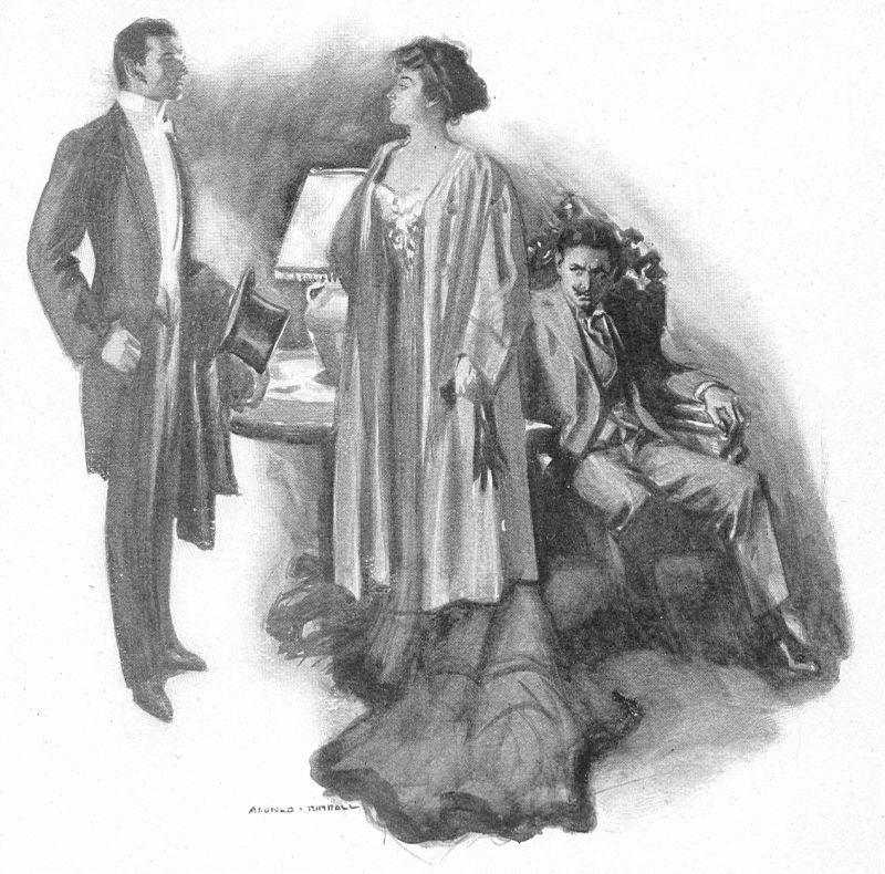 The ambassador laid aside hat and coat and entered his office with a slightly puzzled expression on his face. Standing before a window, gazing idly out into the light-spangled night, was a young woman, rather tall and severely gowned in some rich, glistening stuff which fell away sheerly from her splendid bare shoulders. She turned and he found himself looking into a pair of clear, blue-gray eyes, frank enough and yet in their very frankness possessing an alluring, indefinable subtlety. He would not have called her pretty, yet her smile, slight as it was, was singularly charming, and there radiated from her a something—personality, perhaps—which held his glance. He bowed low, and closed the door.