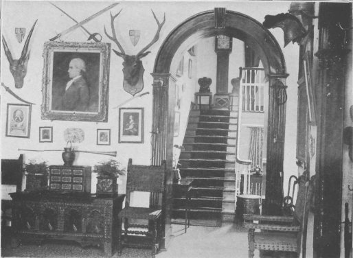 A copy of the Magna Charta, a suit of mediaeval armour, several rusty helmets (Cromwellian and otherwise), antlers of several kinds of deer, and a variety of old swords, pistols, and guns were the objects that chiefly attracted my attention. The walls were likewise adorned with a large number of heraldic shields.