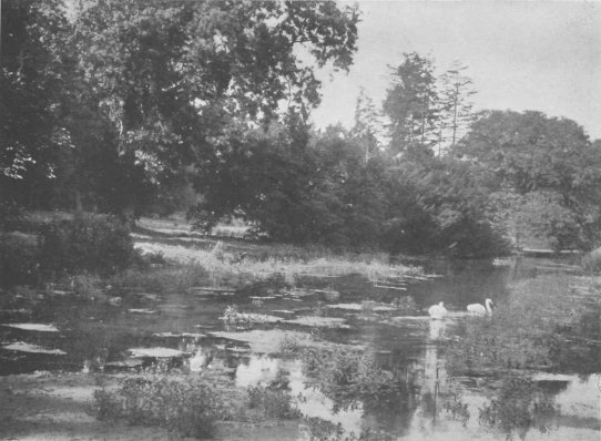 Among other old masters was a portrait of the "John Coxwel" who built the house, by Cornelius Jansen, dated 1613. The house did not appear remarkable either for size or grandeur; yet there is always something particularly pleasing to me to alight unexpectedly on buildings of this kind, and to find that although they are obscure and unknown, they are on a small scale as interesting to the antiquarian as Knole, Hatfield, and other more famous mediaeval houses. Some lattice windows, evidently at some time out of doors, but now on the inner walls, showed that in more recent times the house had been enlarged, and the old courtyard walled in and made part of the hall. Over one of these windows is the inscription, "Post tenebras lux." The part I liked best, however, was the old-fashioned passage, with its lattice windows and musty dungeon savour, leading to the ancient kitchen and to a little oak-panelled sitting-room: but, knocking my head severely against the oak beam in the doorway, I nearly brought the whole ceiling down, a catastrophe which they tell me has happened before now in this rather rickety old manor house. Opening a door on the other side of the house, I passed out into the garden. How characteristic of the place!--a broad terrace running along the whole length of the house, and beyond that a few flower beds with the old sundial in their midst Beyond these a lawn, and then grass sweeping down to the edge of the river, some hundred yards away. Beyond the river again more grass, but of a wilder description, where the rabbits are scudding about or listening with pricked ears; and in the background a magnificent hanging wood, crowning the side of the valley, with a large rookery in it. I was much struck with the different tints of the foliage; for although autumn had not yet begun to turn the leaves, the different shades of green were most striking. A gigantic ash tree on the far side of the river stood out in bold relief, its lighter leaves being in striking contrast to the dark firs in the background. Then walnut and hazel, beech and chestnut all offered infinite variety of shape and foliage. The river here had been broadened to a width of some ninety feet, and an island had been made. The place seemed to be a veritable sportsman's paradise! Dearly would Isaac Walton have loved to dwell here! From the windows of the old house he would have loved to listen to the splash of the trout, the cawing of the rooks, and the quack of the waterfowl, while all the air is filled with the cooing of doves and the songs of birds. At night he could have heard the murmuring waterfall amid a stillness only broken at intervals by the scream of the owl, the clatter of the goatsucker, or the weird barking of the foxes: for not two hundred yards from the house and practically in the garden, is a fox earth that has never been without a litter of, cubs for forty years!