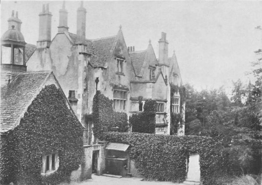 Up above on the wolds all is bleak, dull, and uninteresting. The air up there is ever chill; walls of loose stone divide field from field, and few houses are to be seen. But down in the valley all is fertile and full of life. It is here that the old-fashioned villagers dwell. How well I remember the first time I came upon it! One fine September evening, having left all traces of railways and the ancient Roman town of Cirencester some seven long miles behind me, with wearied limbs I sought this quiet, sequestered spot. Suddenly, as I was wondering how amid these never ending hills there could be such a place as I had been told existed, I beheld it at my feet, surpassing beautiful! Below me was a small village, nestling amid a wealth of stately trees. The hand of man seemed in some bygone time to have done all that was necessary to render the place habitable, but no more. There were cottages, bridges, and farm buildings, but all were ivy clad and time worn. The very trees themselves appeared to be laden with a mantle of ivy that was more than they could bear. Many a tall fir, from base to topmost twig, was completely robed with the smooth, five-pointed leaves of this rapacious evergreen. Through the thick foliage, of elm and ash and beech, I could just see an old manor house, and round about it, as if for protection, were clustered some thirty cottages. A murmuring of waters filled my ears, and on descending the hill I came upon a silvery trout stream, which winds its way down the valley, broad and shallow, now gently gliding over smooth gravel, now dashing over moss-grown stones and rock. The cottages, like the manor house and farm buildings, are all built of the native stone, and all are gabled and picturesque. Indeed, save a few new cottages, most of the dwellings appeared to be two or three hundred years old. One farmhouse I noted carefully, and I longed to tear away the ivy from the old and crumbling porch, to see if I could not discern some half-effaced inscription telling me the date of this relic of the days of "Merrie England."