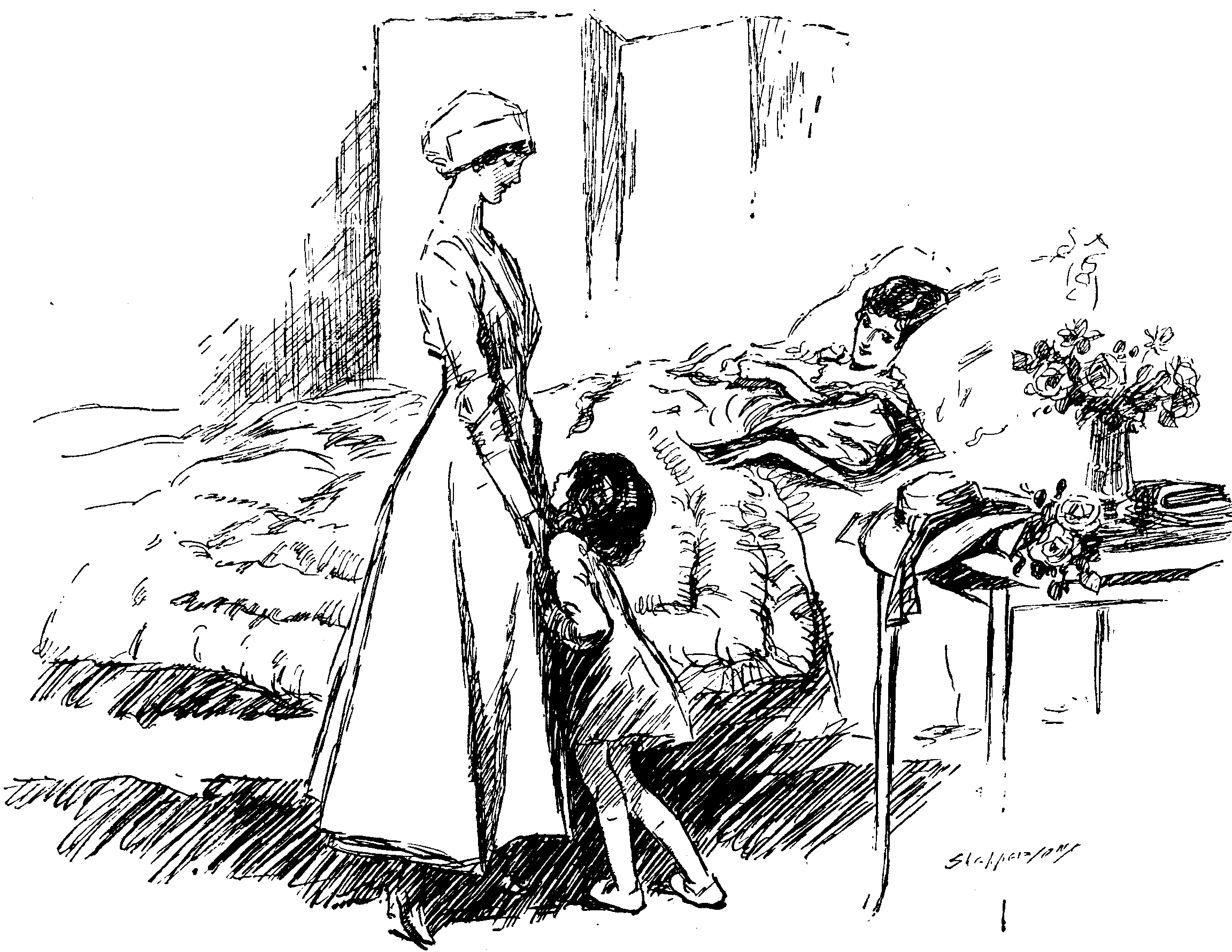 And she wears the cap and apron of a V.A.D.