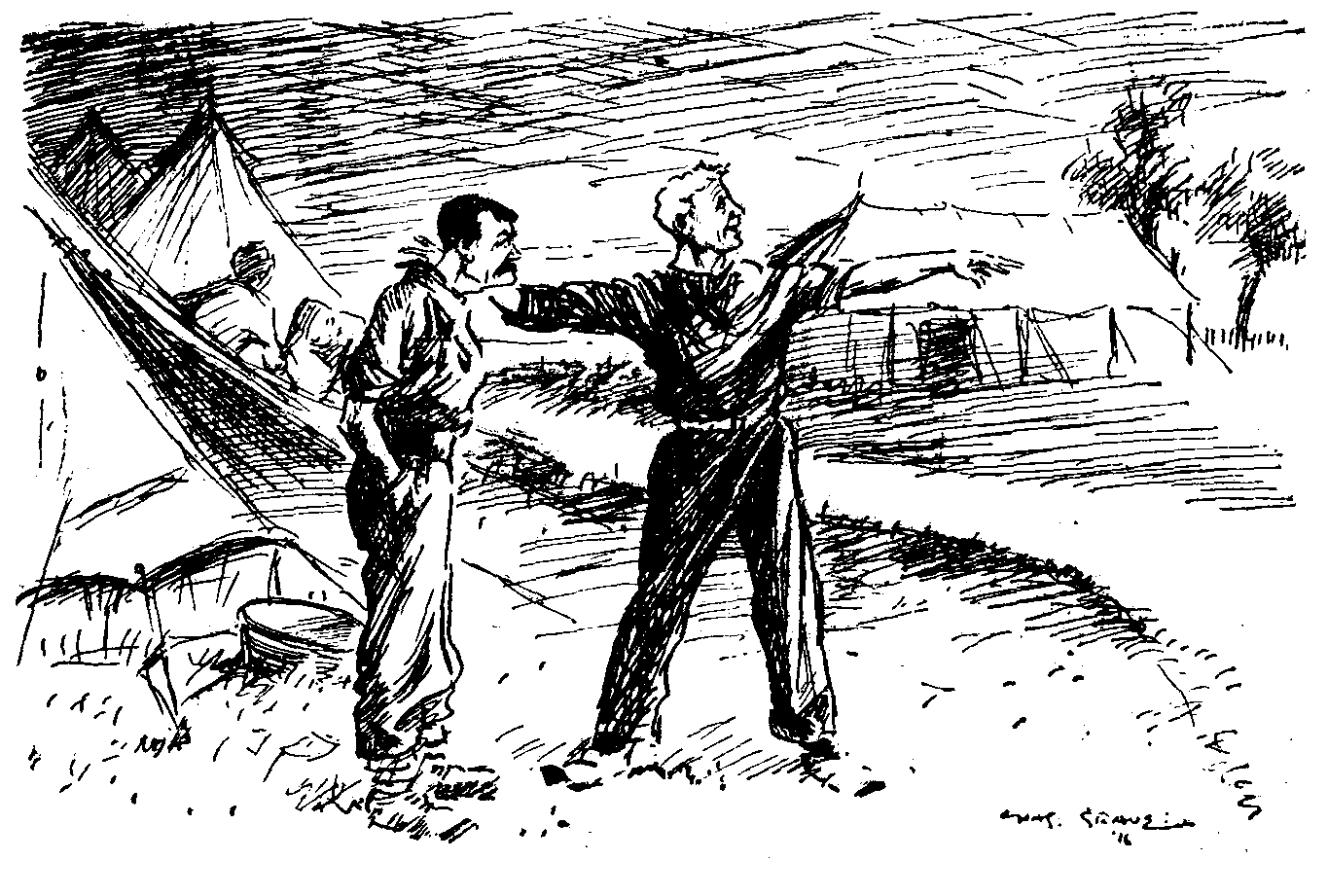 His Tent Mate. "YUS. ANOTHER MUCKIN' 'OT DAY TO-MORRER."