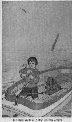 "Go 'n lend 'em a hand, hoy, since yer so gone on it," the jerseyed one recommended quite understandingly. So Ken went and hauled at a rope, and watched the great expanse of sodden gray canvas rise and shiver and straighten into a dark square against the sky. He imagined himself one of the crew of the Celestine, hoisting the foresail in a South American port.