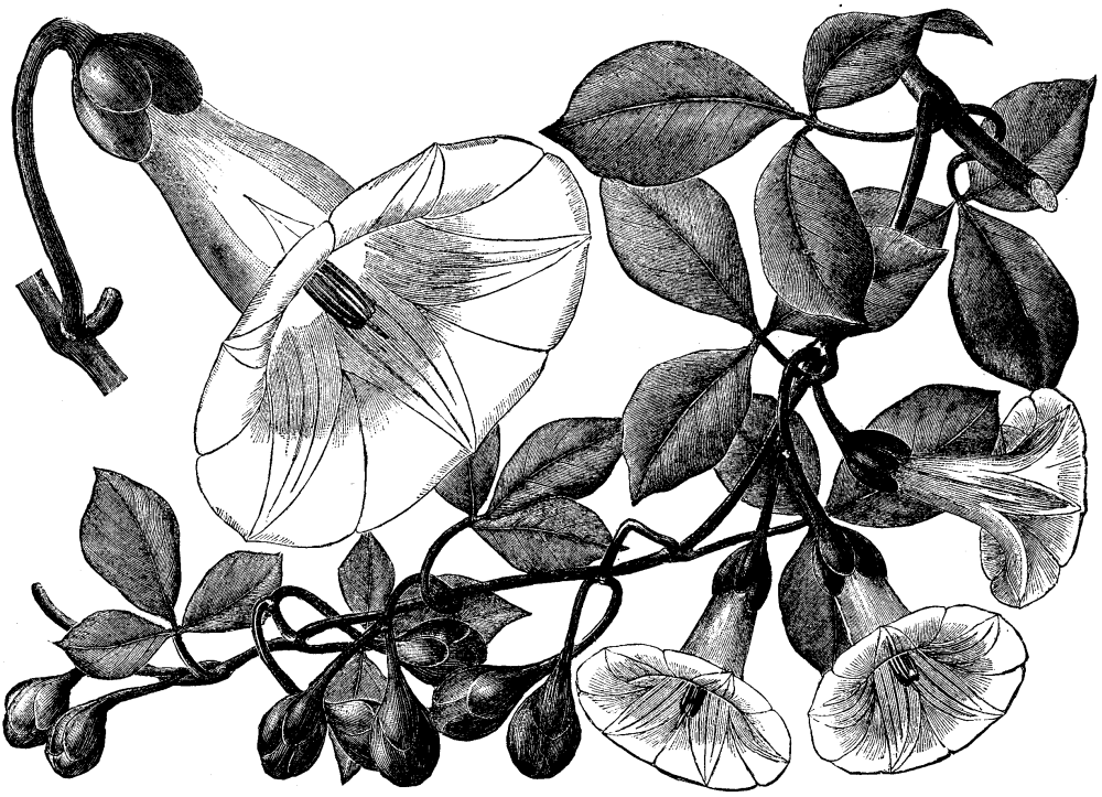 The first time we saw flowers of this beautiful new climbing plant (about a year ago) we thought that it was a white-flowered variety of the favorite old Ipomæa Horsfalliæ, as it so nearly resembles it. It has, however, been proved to be a distinct new species, and Dr. Masters has named it in compliment to Mr. Thomson of Edinburgh. It differs from I. Horsfalliæ in having the leaflets in sets of threes instead of fives, and, moreover, they are quite entire. The flowers, too, are quite double the size of those of Horsfalliæ, but are produced in clusters in much the same way; they are snow-white. This Ipomæa is indeed a welcome addition to the list of stove-climbing plants, and will undoubtedly become as popular as I. Horsfalliæ, which may be found in almost every stove. It is of easy culture and of rapid growth, and it is to be hoped that it is as continuous in flowering as Horsfalliæ. It is among the new plants of the year now being distributed by Mr. B.S. Williams, of the Victoria Nurseries, Upper Holloway.--The Garden.