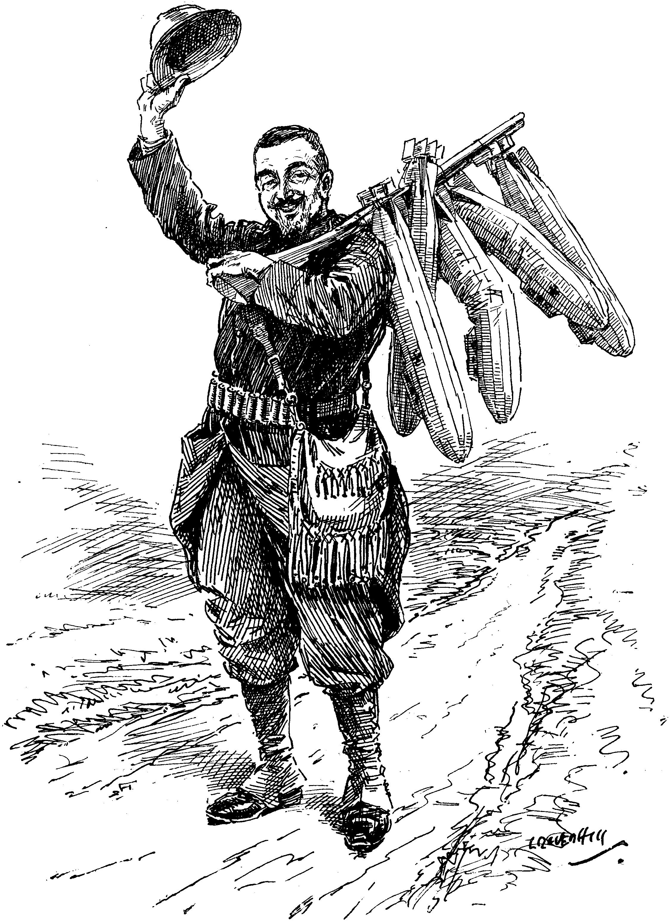 Several parties of Germans who escaped from internment camps have been recaptured with comparative ease. It is supposed that their gentle natures could no longer bear the spectacle of the sacrifices that the simple Briton is enduring in order that they may be well fed.