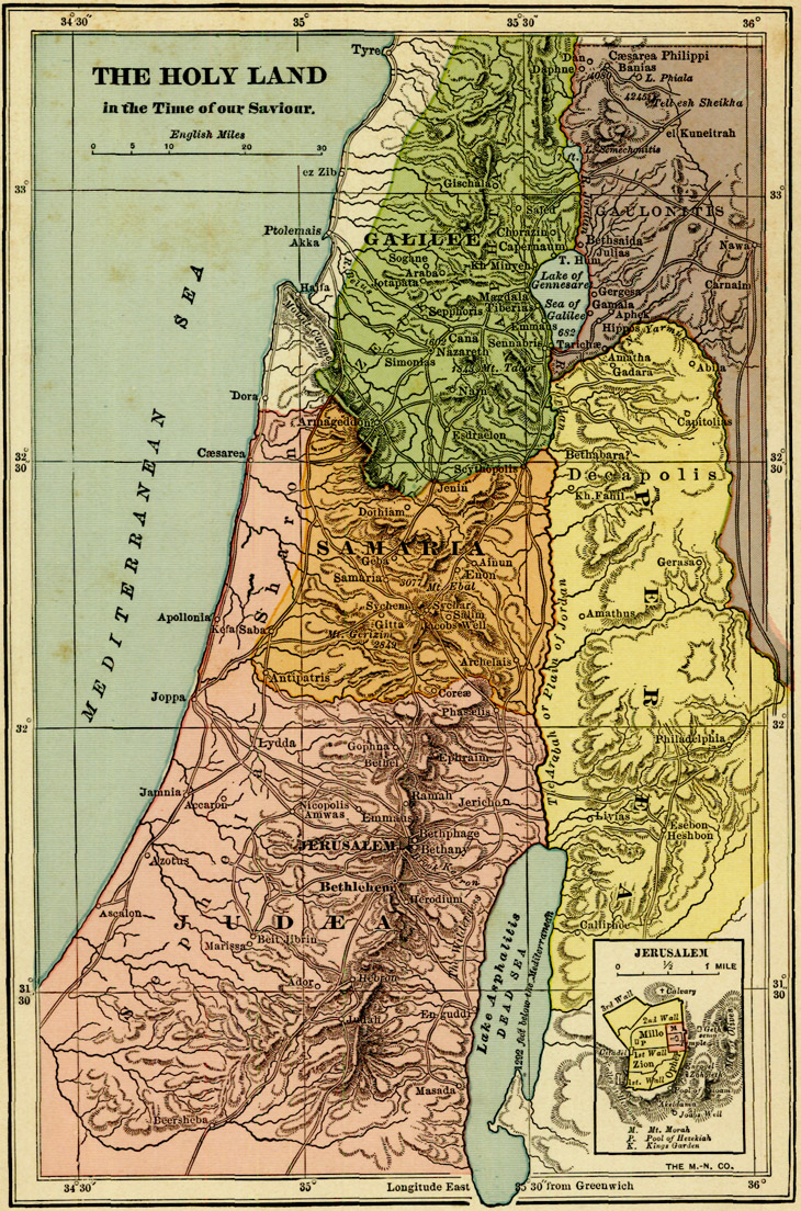 The site of Cæsarea Philippi is one of the loveliest spots in Northern Palestine. On ground carpeted with an infinite variety of wild flowers, the traveller rests in the grateful shade of oak and mulberry, olive and fig tree. The sound of many waters is heard on all sides as they hasten from the adjacent slopes of Herman to join the head waters of Jordan, bursting in strength from a cavern at the foot of a mighty cliff. Hither, with his handful of followers, came Jesus, weary and in deep depression of spirit, a fugitive from his own people, who had finally rejected him; and here, in reply to searching and anxious enquiry, "Whom say ye that I am?" he received from Simon Peter the memorable confession, "Thou art the Christ, the Son of the living God."