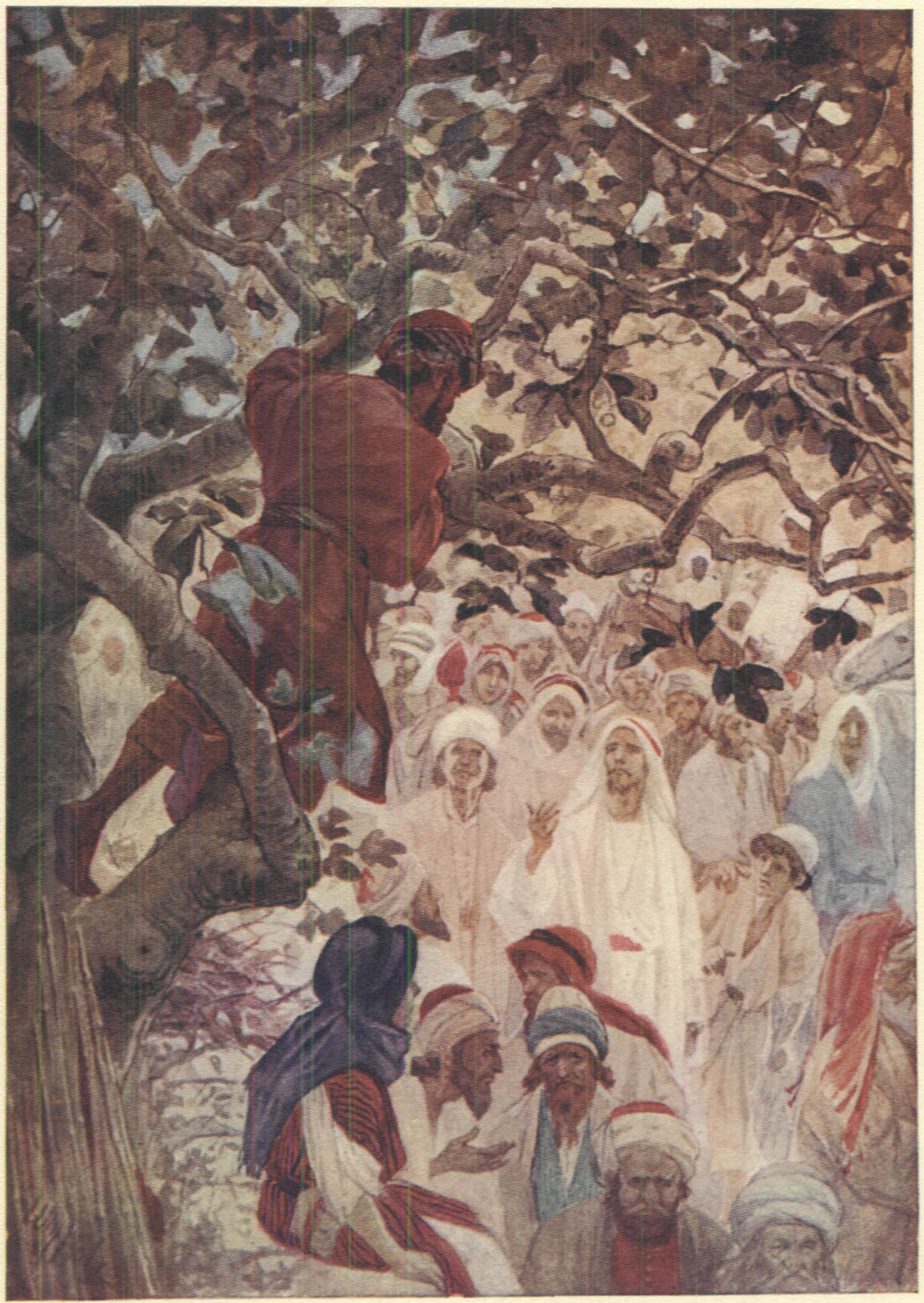 And Jesus entered and passed through Jericho. And, behold, there was a man named Zacchæus, which was the chief among the publicans, and he was rich. And he sought to see Jesus who he was; and could not for the press, because he was little of stature. And he ran before, and climbed up into a sycomore tree to see him: for he was to pass that way. And when Jesus came to the place, he looked up, and saw him, and said unto him, Zacchæus, make haste, and come down; for to day I must abide at thy house. And he made haste, and came down, and received him joyfully. And when they saw it, they all murmured, saying, That he was gone to be guest with a man that is a sinner. And Zacchæus stood, and said unto the Lord: Behold, Lord, the half of my goods I give to the poor; and if I have taken any thing from any man by false accusation, I restore him fourfold. And Jesus said unto him, This day is salvation come to this house, forsomuch as he also is a son of Abraham. For the Son of man is come to seek and to save that which was lost.—St. Luke xix: 1-10.