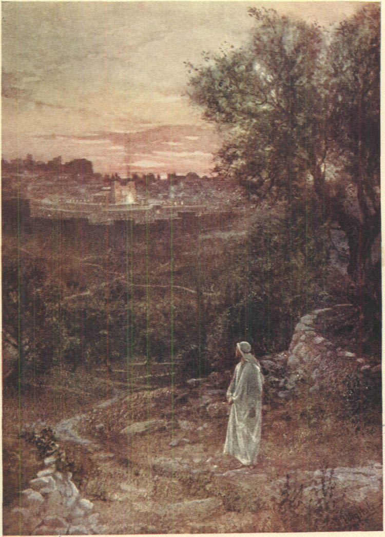 As we ascend towards sunset the slopes of Olivet, and pause to gaze on the scenes beneath, the panorama of the city presented to view is in its leading features essentially similar to that upon which the eyes of Jesus rested, when "at night he went out, and abode in the mount that is called the Mount of Olives" Yonder stands a temple within that sacred enclosure which, for well-nigh three thousand years, save for the period during which, "the abomination of desolation spoken of by Daniel the prophet stood in the Holy place," has been dedicated to the worship of Jehovah. The citadel of Jerusalem breaks the skyline where stood the tower of Hippicus, and to the left, against the setting sun, the cypresses in a monastery garden mark the spot once covered by the gardens of the palace of Herod. Siloam stands as of old on the hither side, overlooking the valleys of Hinnom and Kidron; while to-day, as in former times, the olive yards beneath and the trees around, might well give the name which it bears to the hill on which we stand.